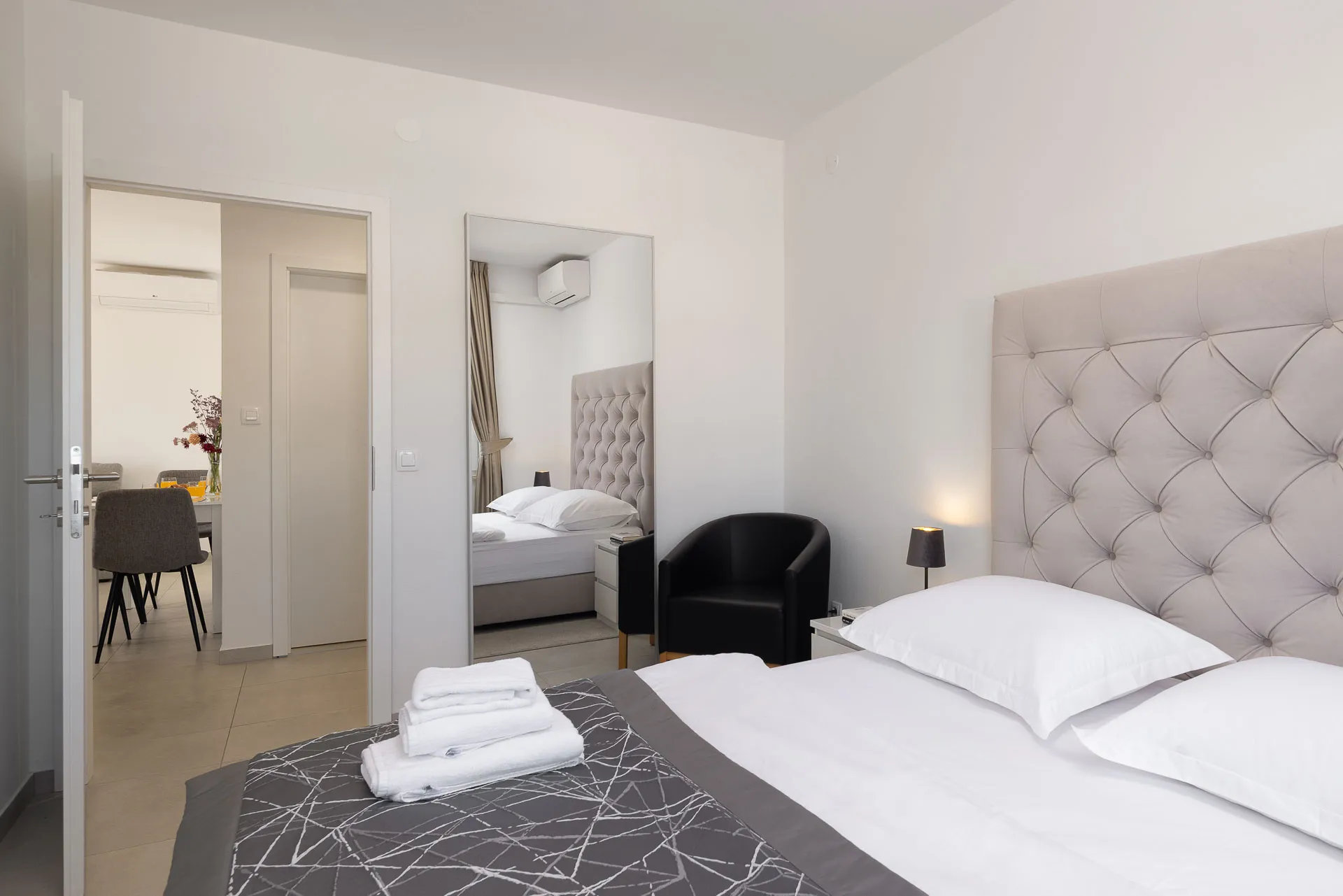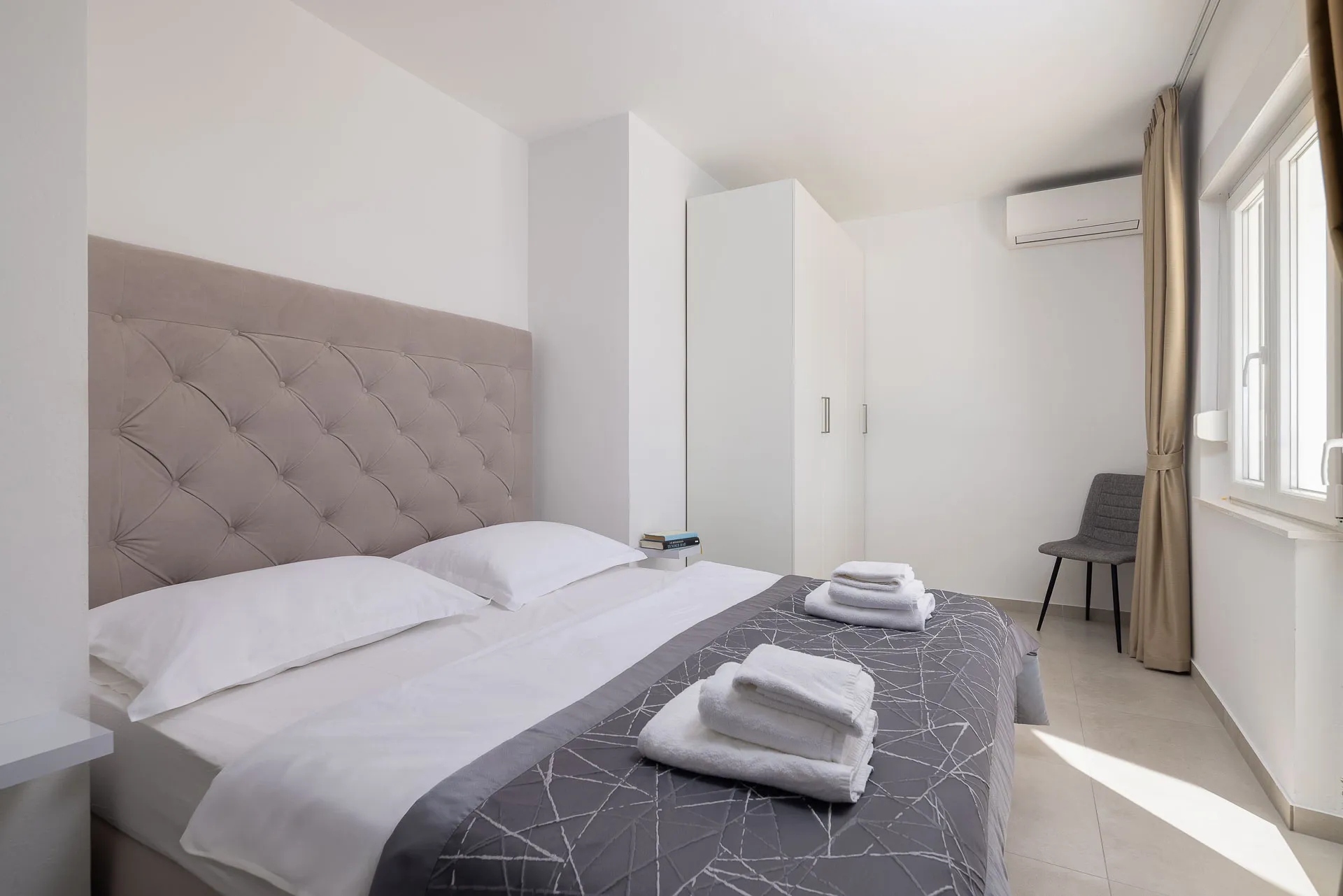 Ovaj klimatizirani apartman ima privatni ulaz, 1 dnevni boravak, 2 odvojene spavaće sobe i 1 kupaonicu s tušem i sušilom za kosu. U čajnoj kuhinji gosti će pronaći ploču za kuhanje, hladnjak, perilicu posuđa i električno kuhalo za vodu. Ovaj apartman ima balkon s pogledom na more, perilicu rublja i TV ravnog ekrana. Jedinica ima 3 kreveta.