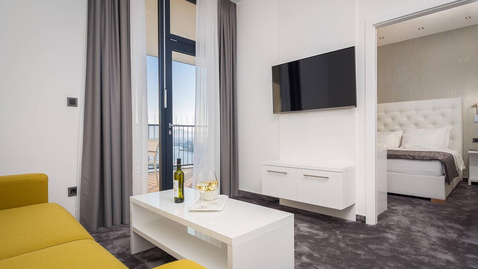 Dvije spavaće sobe s King Size krevetima, dvije kupaonice s toaletom i tuš kabinom. Uključena kuhinja, prostor za blagovanje, te dnevni boravak s kaučem na razvlačenje, klima uređajem, balkonom i ležaljkama za sunčanje.