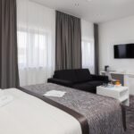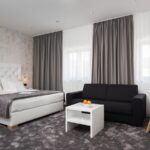 Jedna spavaća soba s King size krevetom, uz kupaonicu s toaletom i tuš kabinom, te kaučem na razvlačenje i klima uređajem.