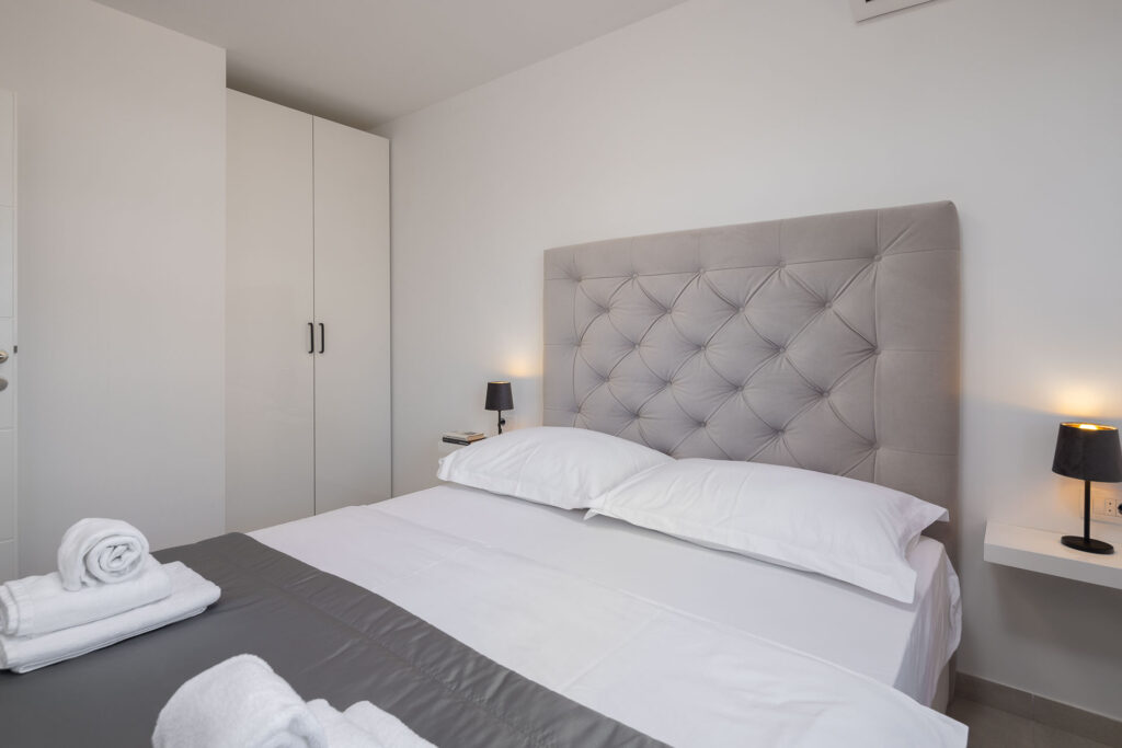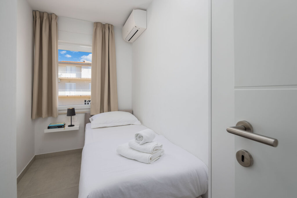 Dieses klimatisierte Apartment mit separatem Eingang verfügt über ein Wohnzimmer, zwei separate Schlafzimmer und ein Badezimmer mit Dusche und Haartrockner. Die Küchenzeile ist mit Herd, Kühlschrank, Geschirrspüler und Wasserkocher ausgestattet. Vom Balkon mit Meerblick bietet das Apartment außerdem eine Waschmaschine und einen Flachbildfernseher. Es verfügt über drei Betten.